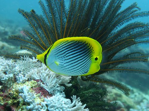アニラオでは毎日3本目のダイビングを終えるとレストランでその日撮った写真を見ながらログ付けをしていたのですが、その中で見た瞬間に「アケボノチョウチョウウオね。」と言ってしまっていたのですが、スポットテイルバタフライフィッシュも混ざっていました。