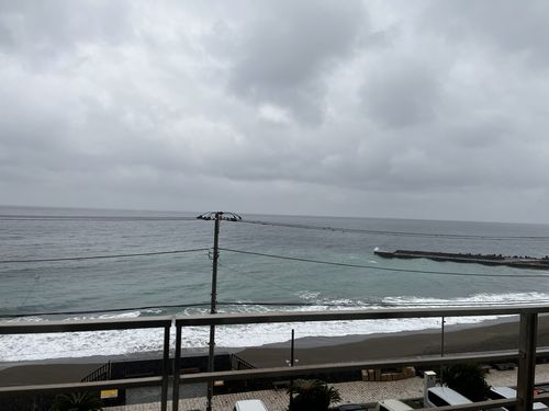 6時からオープンの露天風呂に浸かりに行きましたが着くと雨が降り出して来て温泉も温度高めであまり浸かっていられず早々に部屋に戻りました。外はすごく寒くて部屋から見られる海も寒々としています。