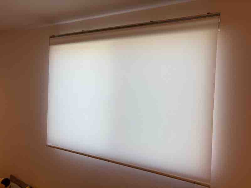 あと、先日ネットで購入したロールスクリーンを設置したのですが、一箇所だけうまくブラケットが固定出来なくて設置出来ていませんでした。施工業者さんに確認したところ、ビスが35mm以上必要ですが短かったのではないですかとのことで確かにそれより短かったと思って40mmのビスを購入して付けてみるとしっかりと固定出来ました。ここはダイニングエリアでお隣の家とちょっと目が会ってしまう可能性があるのでダブルロールスクリーンにしました。この状態だと外から全く中が見えなくなりますがレースのもの一枚にするとうっすらと外が見えるようになります。