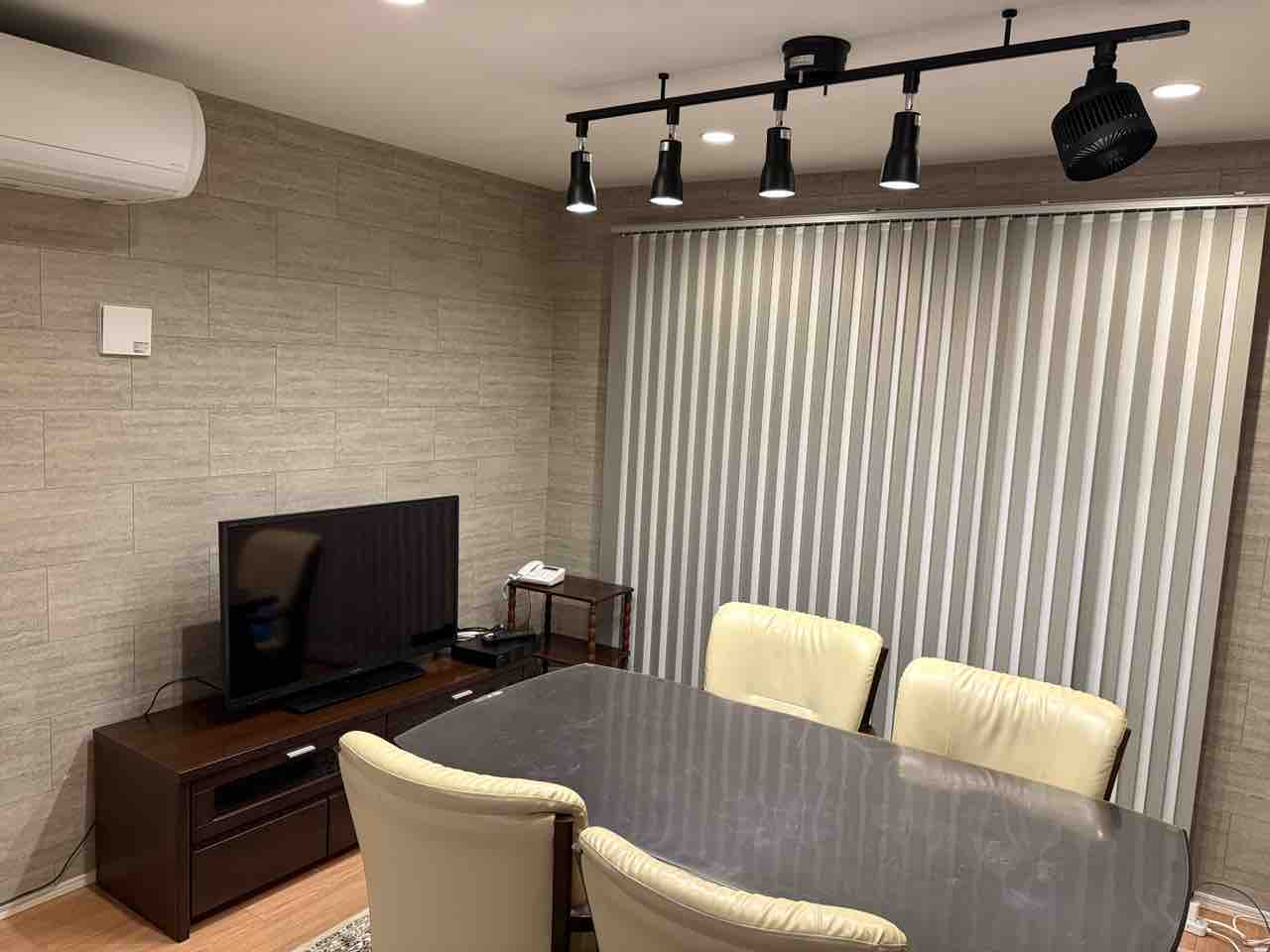 また、リビングとダイニングの照明にダクトレールを設置していちばん外側にサーキュレーターを付けました。
