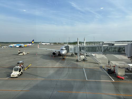 お寿司を少しつまんでから手荷物検査を受けて搭乗口へと移動しました。帰りもジェットスターで成田空港へ向かいます。