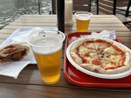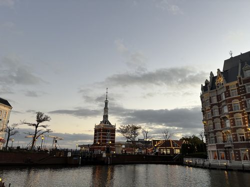 夜のショーやライトアップを楽しみたいので早めに軽く夕飯を食べました。ドムトールンというタワーの下の運河脇にある運河テラスバルで運河を見ながらいただきました。夕方の屋外でしたが寒いことは無くて、安定のおいしさのプレミアムモルツを楽しむ「ことが出来ました。