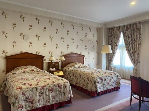 ここでホテルにチェックインできる時間になったのでチェックインしました。今日一泊だけ奮発してハウステンボスの有料エリア内の唯一のホテルのホテルアムステルダムに泊まります。部屋はスタンダードツインの部屋を予約していたのですが今日は修学旅行の団体さんがいるとのことでクラブフロアの四階の部屋に泊まることが出来ました。素敵なお部屋でした。