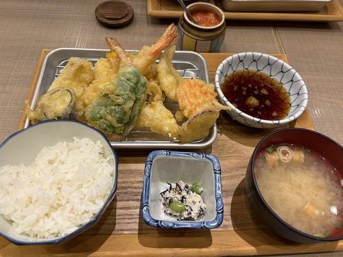 お昼ごはんを食べようということで博多駅近くのKITTE博多にあるしんしんに行ってみましたが大行列でした。ちょっと時間がもったいないので同じくKITTE博多にある喜水丸で天ぷら定食を頂きました。