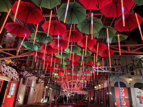 アンブレラストリートもLEDライトに照らされた傘が綺麗でした。