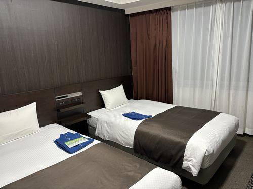 天神から駅前の今回泊まるホテルには歩けそうな距離なので歩いて行きました。部屋は落ち着いたインテリアでとても綺麗でした。