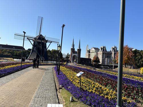 12月だというのにまるで寒く無くてフラワーロードにはパンジーをメインに綺麗に花が咲いていました。