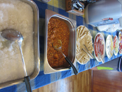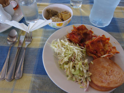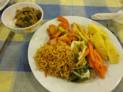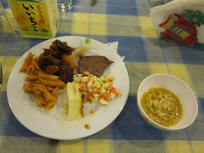 「ひまわりと子犬の7日間」、「G.I.ジョー」、「オズはじまりの戦い」と3本の映画を見ていると今度は朝食です。なんとなくフィッシュを頼んでしまい、またカレーを食べてしまいました。上のメニューでキリバス(スリランカスタイルフィッシュカレー、スィーニサンバル)で、下はたぶんチーズ&ベジタブルフリッタータ(グリルドトマト、ほうれん草&クリームコーン、ポテト)です。
