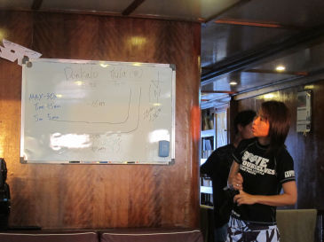 ダイビングを終えて、イクエーター号に戻ってシャワーを浴びていると、minminがやってきてインドネシアで地震があって、津波警報が出ているとのことでした。救命胴衣の場所を確認してちょっと緊張です。