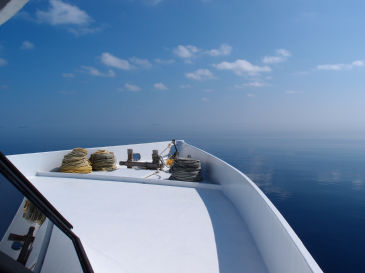 朝食を終えるとベタなぎの中を北へと進みます。