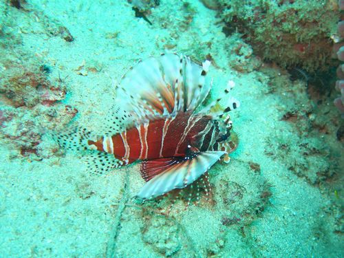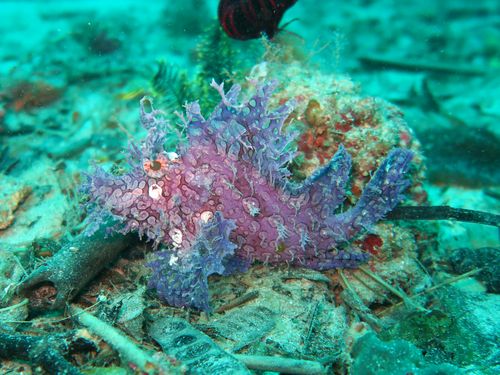 今日の1本目はボロカサゴを探しにCovan Caveに潜ります。エントリーしてどんどん深場へ潜って行くといました。ボロカサゴです。