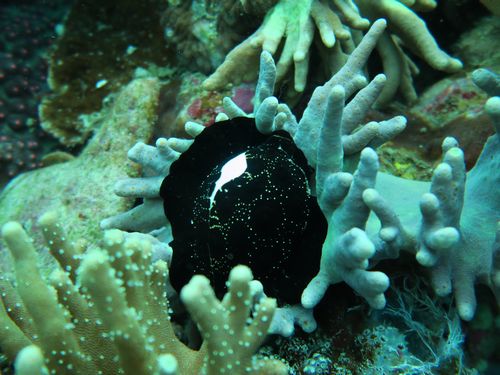 30m近い深場まで潜ってしまったので撮影はそこそこに切り上げて浅い深度に戻ってミゾレウミウシを見ました。