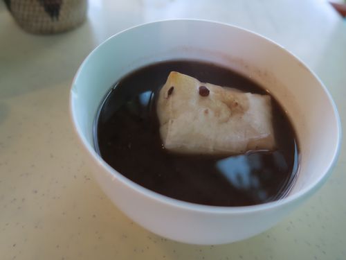 これで今日のダイビングはおしまいです。着替えてレストランでログ付けをしているとお汁粉を出してくれました。今日は鏡開きだそうです。